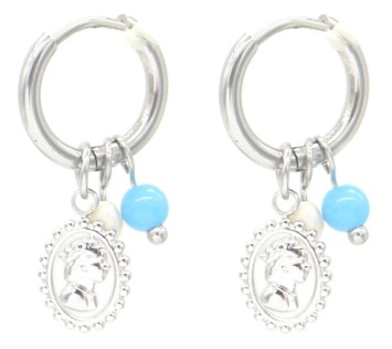 Deze oorbellen bestaan uit kleine ringen oftewel hoops (10 mm) met daaraan ovale bedel met kopje, een turquoise kraal en zoetwaterpareltjes . De hoops zijn van stainless steel zodat ze mooi blijven!
