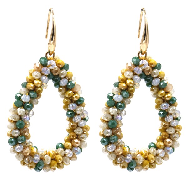 Mooie oorbellen bestaande uit goudkleurige haakjes met druppelvormige hangers met honderden glans kraaltjes in multicolor. Niet al te zwaar, deze kraaltjes oorbellen!