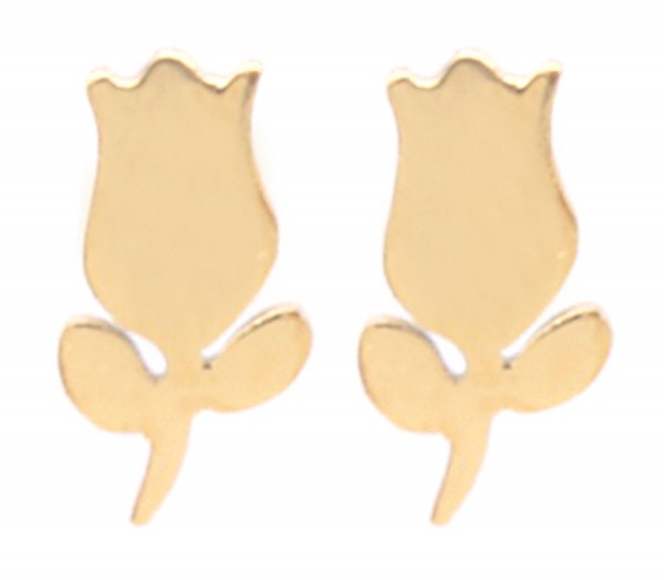 Deze kleine goudkleurige oorbellen zijn studs ofwel stekers met een roos in de knop, van stainless steel zodat ze mooi blijven!