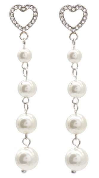 Deze oorbellen bestaan uit stekers met hartjes en strass-steentjes met onderaan parels van klein naar groot, van stainless steel zodat je er lang plezier van hebt!