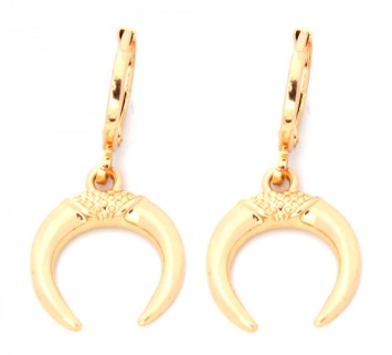Deze goudkleurige oorbellen bestaan uit kleine creolen oftewel ringen (10 mm) met daaraan als bedel een maantje. Leuk om te combineren met andere kleine oorringen met bedels, of draag ze gewoon solo!