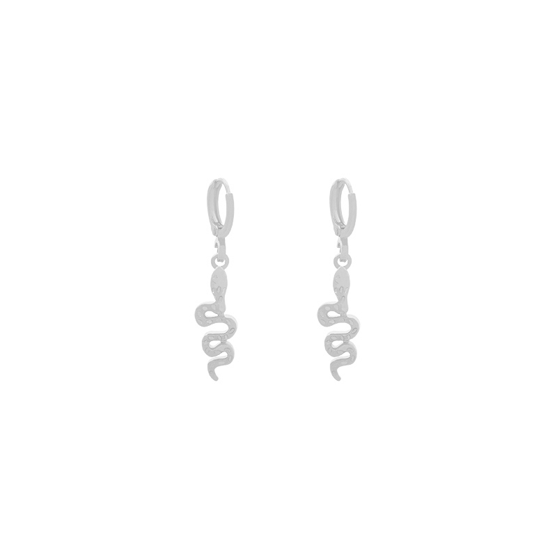 Kleine silver plated ringen met daar aan een Slang oftewel snake, het nieuwste op oorbellengebied, de dieren sieraden zie je dit jaar veel !