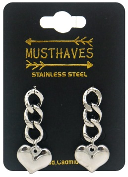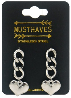 Deze oorbellen bestaan uit stekers met grote schakels en onderaan een hart, van stainless steel zodat je er lang plezier van hebt!