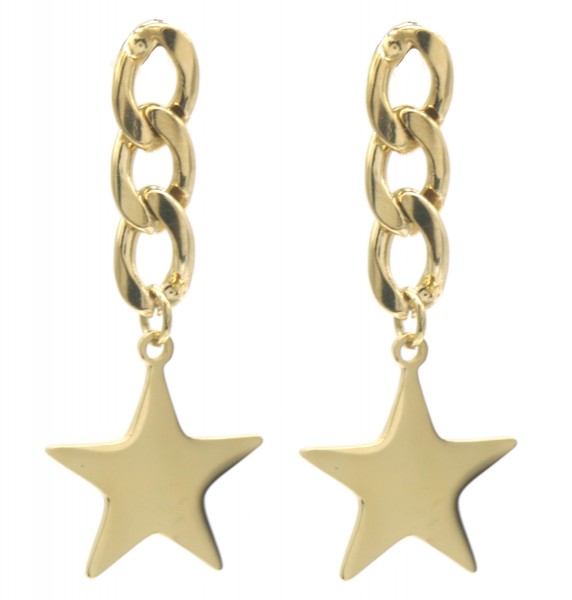 Oorbellen schakels & Ster st-steel goud