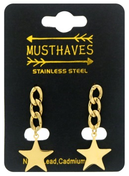 Deze oorbellen bestaan uit stekers met schakels en onderaan een ster, van stainless steel zodat je er lang plezier van hebt!
