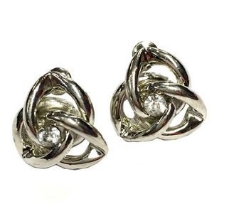 Zilverkleurige oorstekers in bloemen vorm met een strass-steentje in het midden, grootte ong. 18 mm doorsnee.